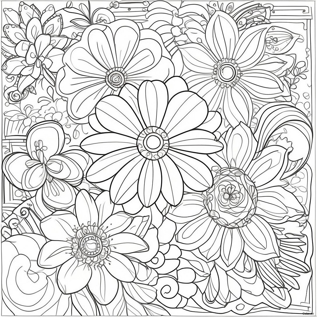 Ingewikkeld Bloemenboeket Kleurplaat
